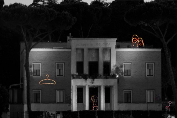 Kristien De Neve, artista belga residente a Roma, in occasione del 75° anniversario dell’Academia Belgica presenterà un’ installazione sulle terrazze e sulle mura esterne dell’edificio. Sovrapporrà alla solida, sicura ed inamovibile facciata dell’Academia Belgica, splendido esempio di architettura razionalista, delle strutture mobili, ondose e oscillanti nelle quali sono riconoscibili i contorni di mattoni, di una farfalla, di una stampella che non porta veste e di una sedia che non offre la possibilità di accomodarsi.